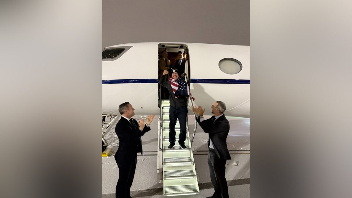 Mark Vogel, a Pennsylvanian history teacher who worked at an Anglo-American school in Moscow, returned to US soil on Tuesday night after Russia, where he was detained since 2021, to talk with Trump administration officials. He was released afterwards. (White House via x)