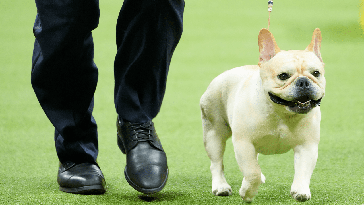 Winston, a French bulldog, competes in the non-sporting team competition at the 147th Westminster Kennel Club Dog Show. The French bulldog remained the most registered purebred dog in the United States last year, according to the latest American Kennel Club rankings. (AP Photo/Mary Altafer, File)