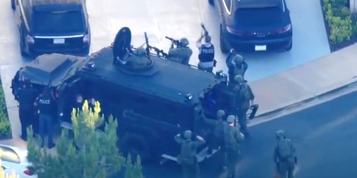 News helicopter footage showed a large police response, with several armed SWAT team officers approaching the front door and searching the second floor.