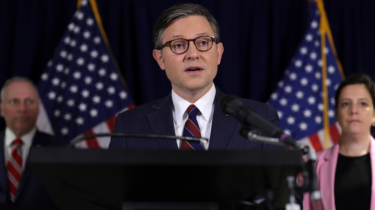House Speaker Mike Johnson speaks at a press conference. (Getty Images)