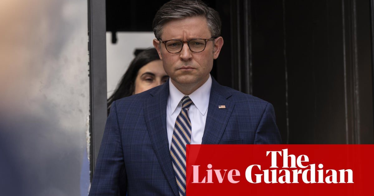 “,”elementId”:”64fc435d-8579-45b8-a0c3-968971ddb2be”}],”attributes”:{“pinned”:true,”keyEvent”:true,”summary”:false},”blockCreatedOn”:1714397098000,”blockCreatedOnDisplay”:”09.24 EDT”,”blockLastUpdated”:1714399548000,”blockLastUpdatedDisplay”: “10.05 EDT”,”blockFirstPublished”:1714397098000,”blockFirstPublishedDisplay”:”09.24 EDT”,”blockFirstPublishedDisplayNoTimezone”:”09.24″,”title”:”House Republicans weigh in on immigration and environmental policy as threat of Johnson’s resignation stalls Gathering together to promote”,”contributors”:[],”primaryDateLine”:”Monday 29 April 2024 10.45 EDT”,”SecondaryDateLine”:”First published Monday 29 April 2024 09.24 EDT”}],”filterKeyEvents”:false,”id”:”key -events-carousel-mobile “}” config=”{“renderingTarget”:”Web”,”darkModeAvailable”:false,”assetOrigin”:”https://assets.guim.co.uk/”}”>