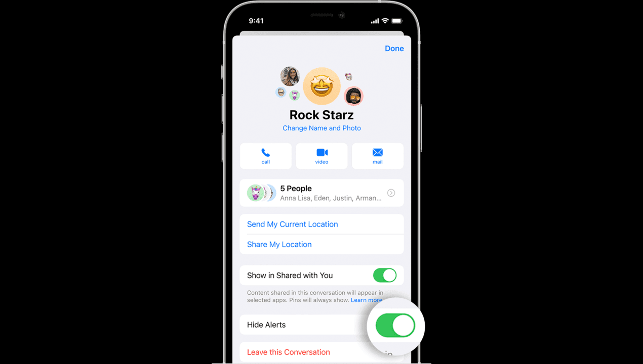 - Alternatively, if you want to stay in the group chat and avoid notifications, you can enable the following options: “Hide alert”