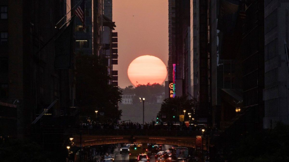 The first Manhattanhenge of the year occurred on Tuesday, with two more expected in July. The spectacle occurs when the Manhattan sun is lining up with the street grid, making the sun appear to fit perfectly between Manhattan’s skyscrapers.