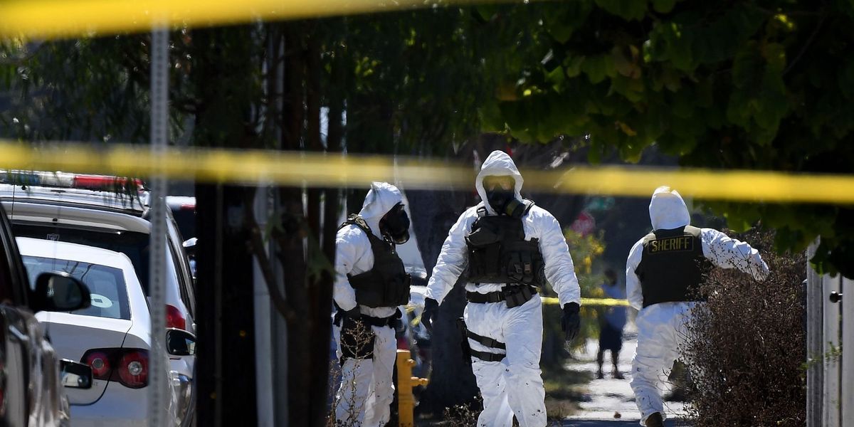 Video in the original report showed officers in protective gear examining the body.