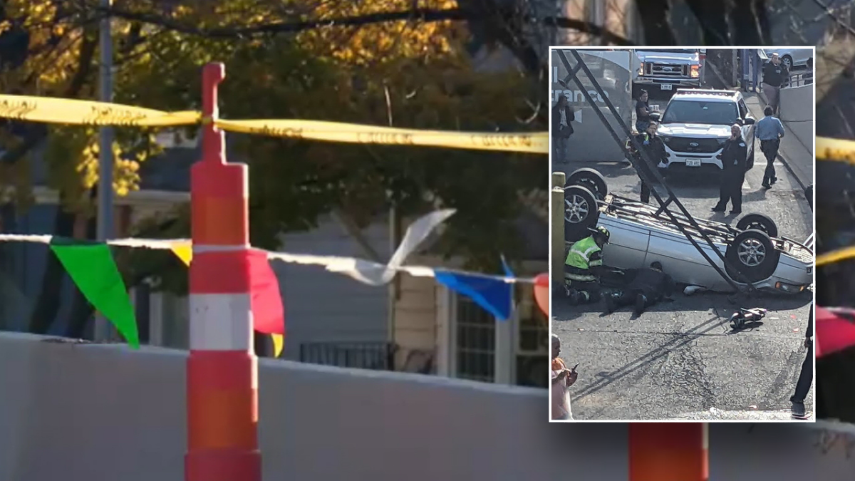 Authorities working near upside-down car