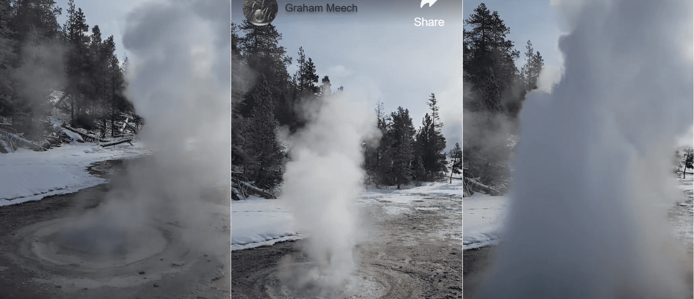 Economic Geyser sprung back to life at 7:56 a.m., January 7, 2024, according to observer Graham Meech and Cowboy State Daily. No, we’re not talking about a British bloke who works in finance; “Economic Geyser” is the name of one of Yellowstone’s most fascinating phenomena, located in the Upper Geyser Basin of the park near Old Faithful.