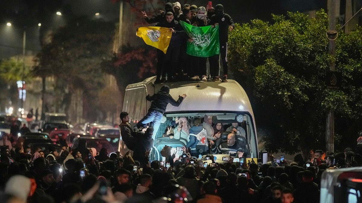 Some supporters were seen climbing on top of a bus carrying detainees from Israel's Ofer prison on the outskirts of Ramallah in the West Bank and waving Hamas flags, the Associated Press reported. All of those released were women and teenagers who had been detained on charges related to Israeli national security.