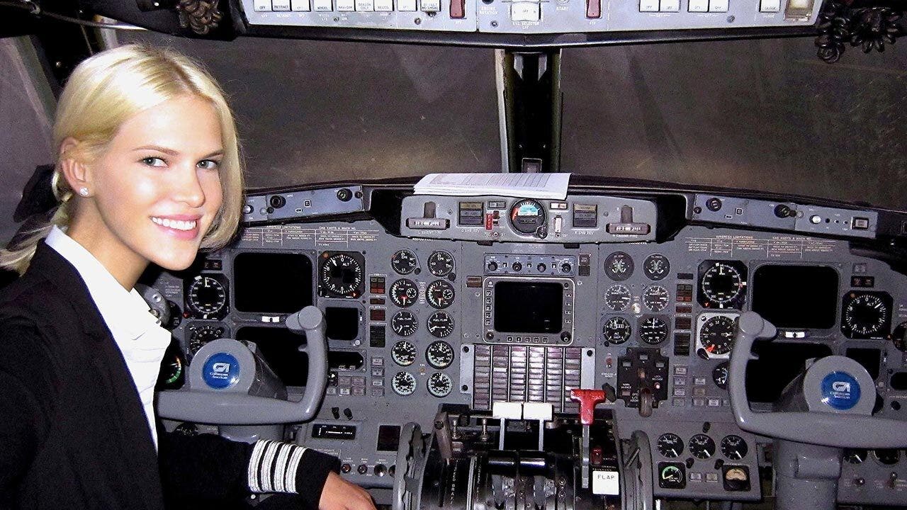 Nadia Marcinkova, an alleged former accomplice of pedophile Jeffrey Epstein, sits in the cockpit of a plane. She reinvented herself as Nadia Marcinko and became her private pilot. According to court documents, Marcinkova invoked her Fifth Amendment rights multiple times when asked about her employer during a 2010 deposition. (Tim Stewart News)