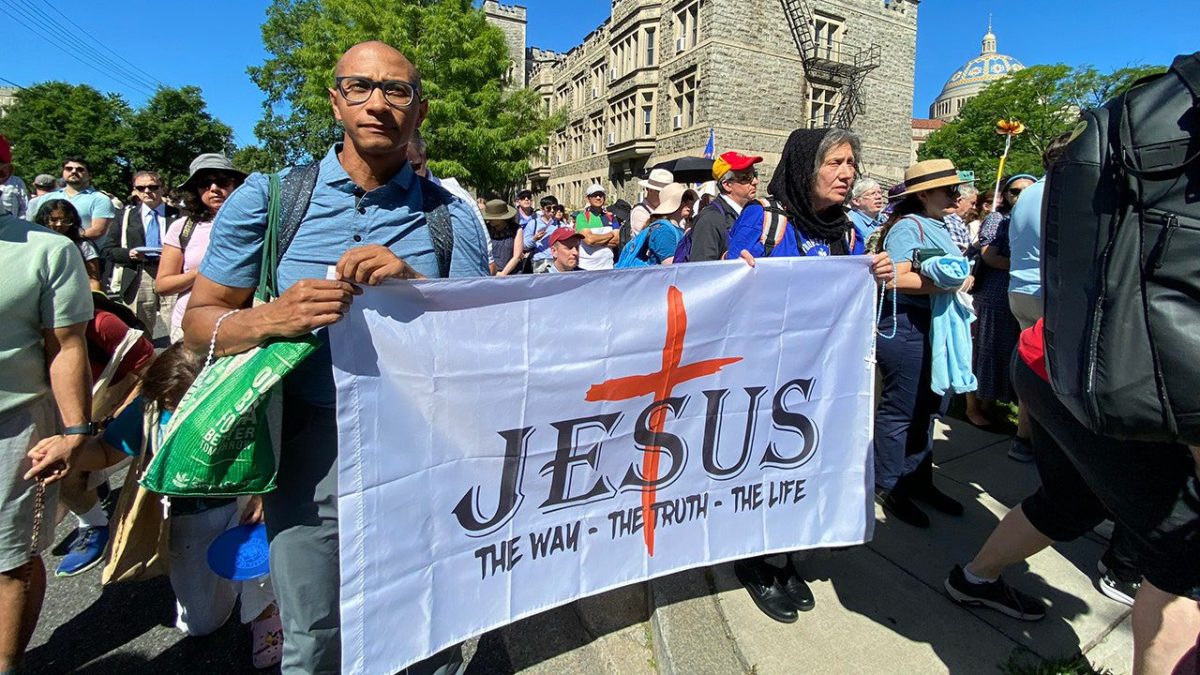 During Saturday’s event, the pilgrims made several stops around Washington’s Brookland neighborhood, where participants had the opportunity to hear teachings about Jesus Christ and venerate the Eucharist.