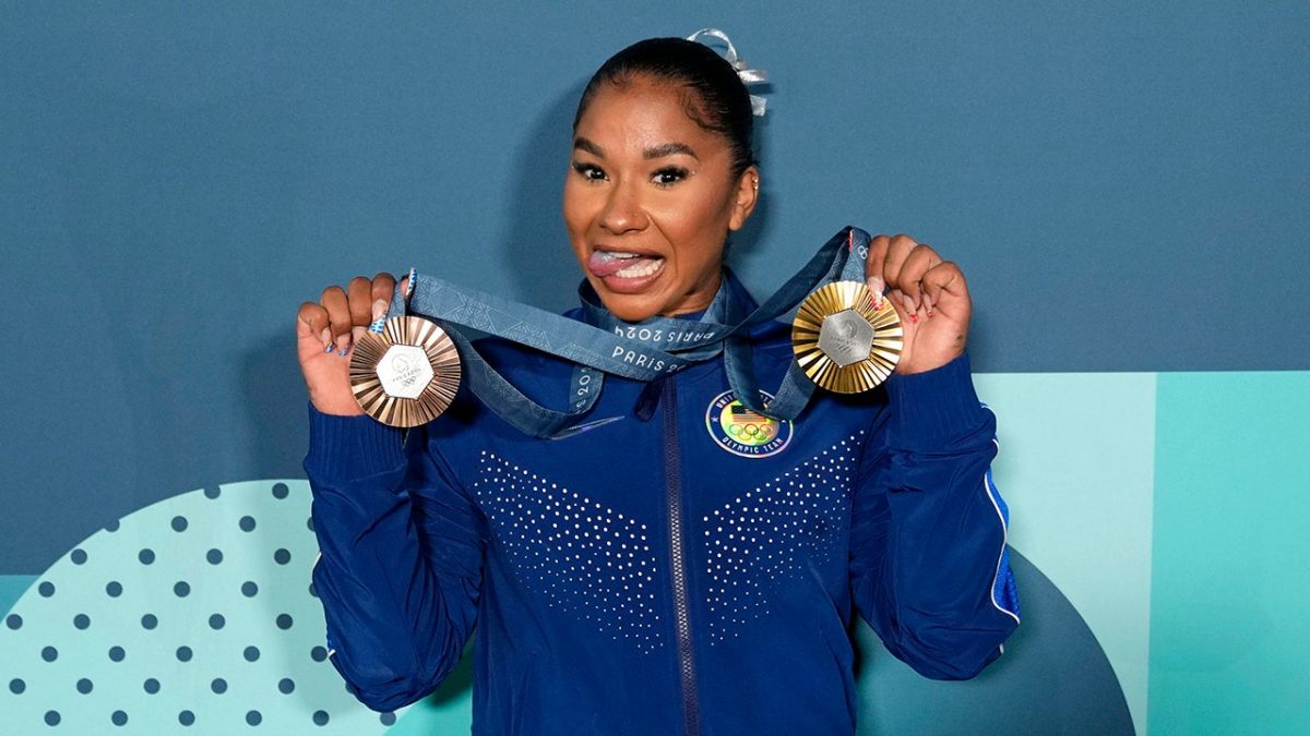 Team USA and gymnast Jordan Chiles didn't let the loss of her Olympic bronze medal stop her from showing off her team gold medal on Tuesday.