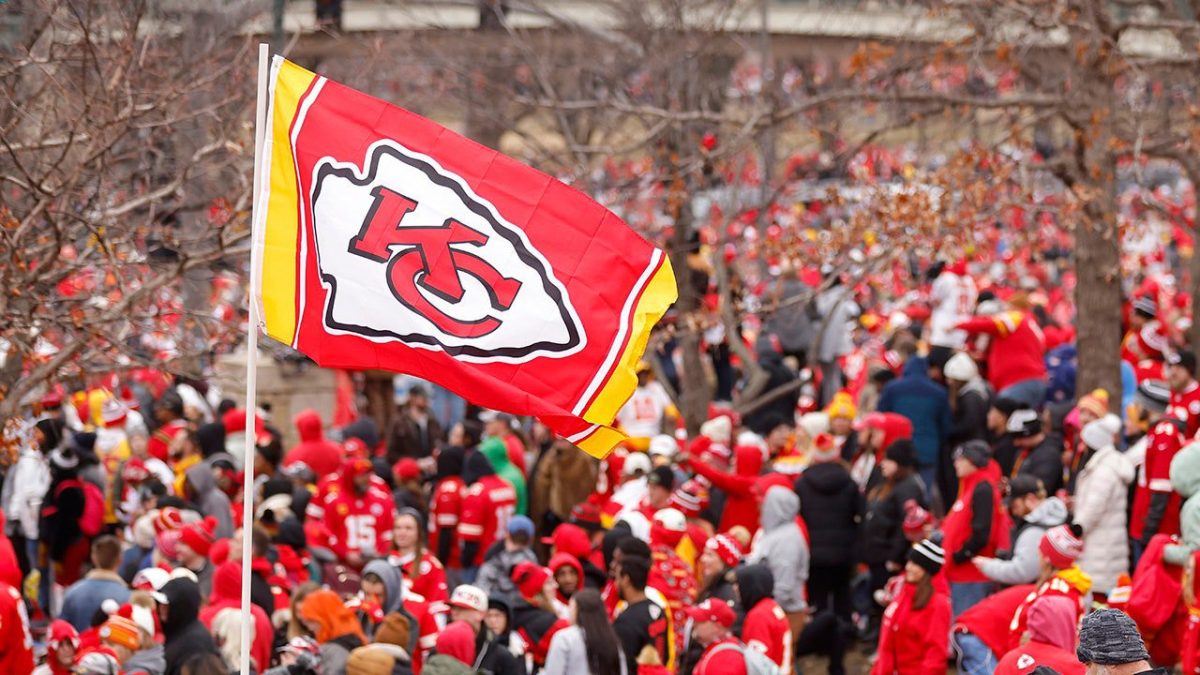Fans before the Kansas City Chiefs’ Super Bowl 55 victory parade on February 15, 2023 in Kansas City, Missouri. (David Ullitt/Getty Images)