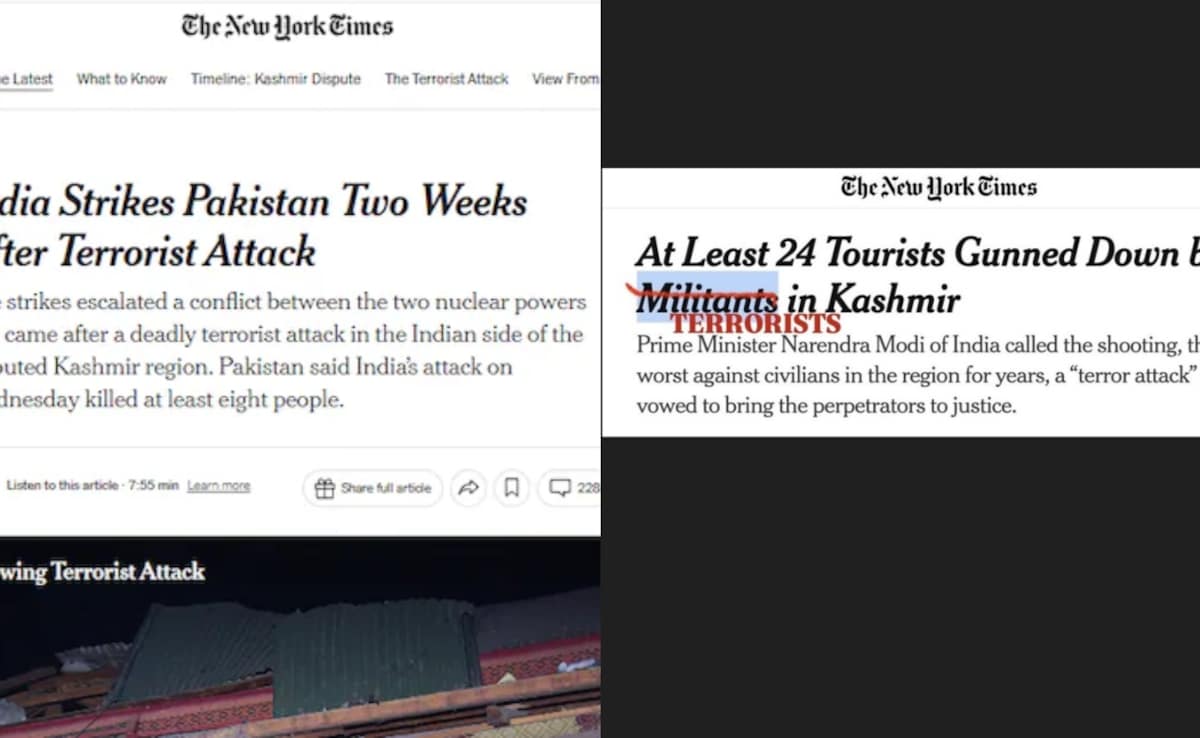 Following the execution of Operation Sindore, wherein India targeted a terrorist camp in Pakistan-occupied Kashmir (POK), there have been notable editorial changes in a New York Times report. For the first time, the American publication described the perpetrator of a terrorist attack in Pahargam as a “terrorist” in the headline. This marks a significant shift from its previous terminology that used words like “gunman” and “extremists,” which faced criticism both in India and internationally.
