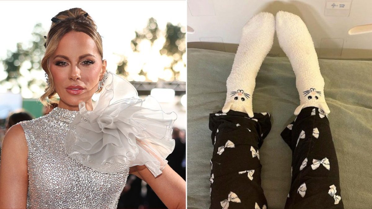 Kate Beckinsale posted a photo of her legs and feet wearing bunny socks with the caption “Happy Easter” amid what appears to be an ongoing health issue. (Getty Images/Instagram)