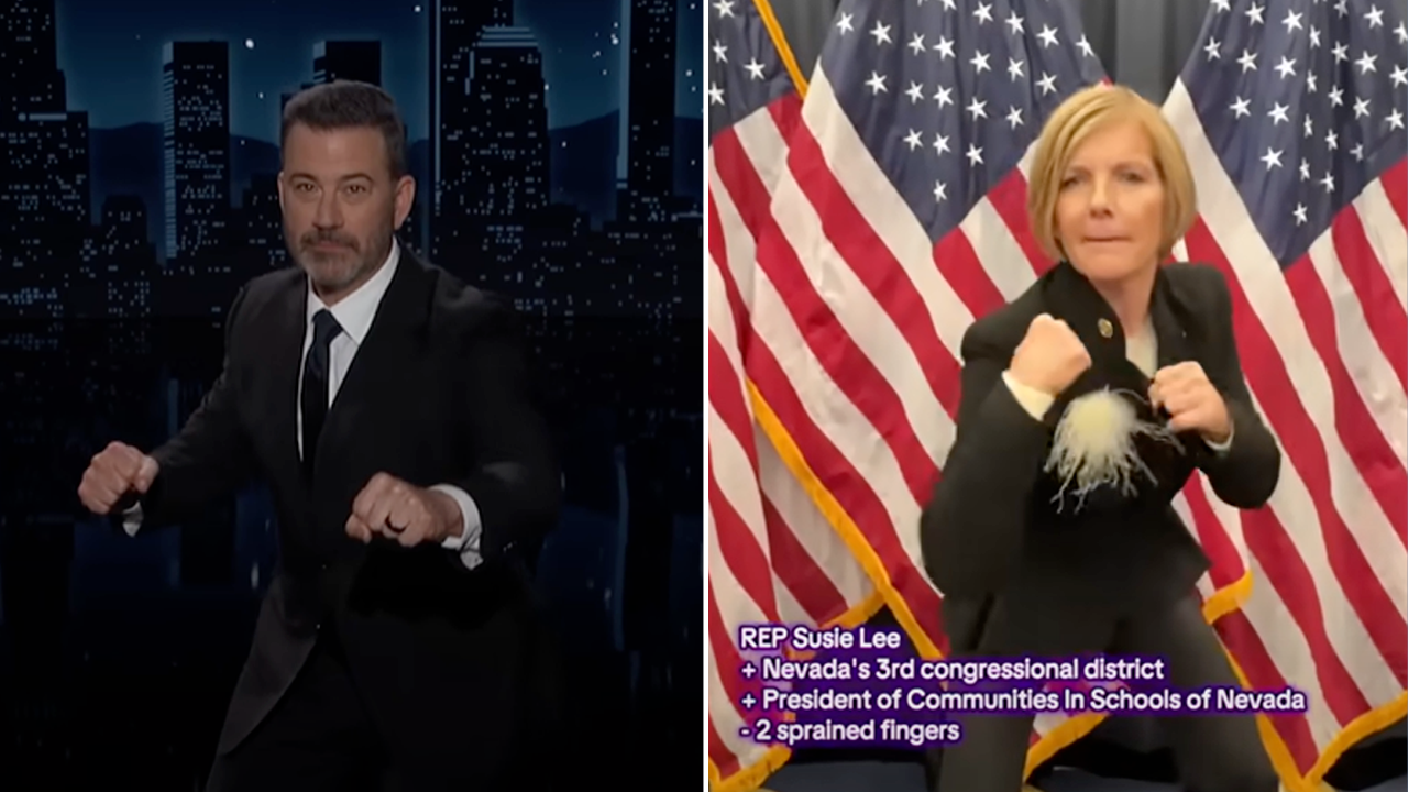 Talk show host Jimmy Kimmel chuckled the “Pick Your Fighter” video as Democrat embarrassment.