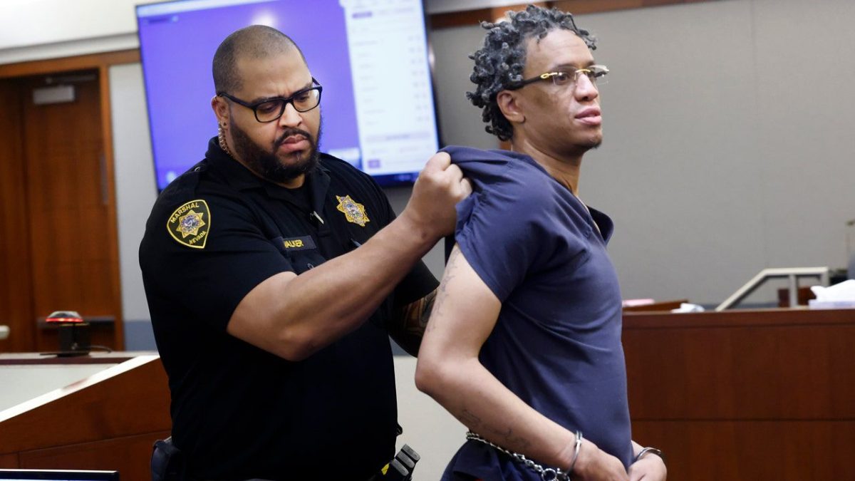 Omar Talley, convicted of the Las Vegas Strip shootings, is escorted from his sentencing hearing in Las Vegas on Tuesday, January 30, 2024. (BizIif Tesfaye/Las Vegas Review-Journal, via AP)