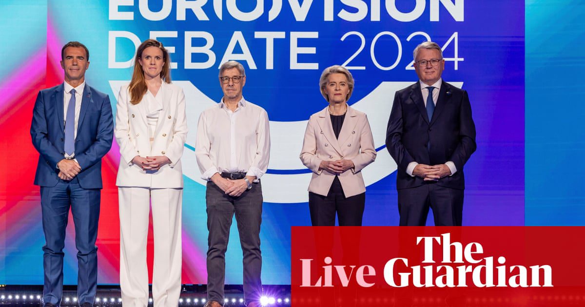 “,”elementId”:”a4549e64-af89-4b31-b17e-ff39baca97f0″},{“expired”:false,”assetId”:”Qtd-VoBp3Xg”,”posterImage”:[{“url”:”https://media.guim.co.uk/f06257d4da7798442cba62d3edc1cbb4a014b5f4/0_120_3500_1968/2000.jpg”,”width”:2000},{“url”:”https://media.guim.co.uk/f06257d4da7798442cba62d3edc1cbb4a014b5f4/0_120_3500_1968/1000.jpg”,”width”:1000},{“url”:”https://media.guim.co.uk/f06257d4da7798442cba62d3edc1cbb4a014b5f4/0_120_3500_1968/500.jpg”,”width”:500},{“url”:”https://media.guim.co.uk/f06257d4da7798442cba62d3edc1cbb4a014b5f4/0_120_3500_1968/140.jpg”,”width”:140},{“url”:”https://media.guim.co.uk/f06257d4da7798442cba62d3edc1cbb4a014b5f4/0_120_3500_1968/3500.jpg”,”width”:3500}],”id”:”98f51ea4-da56-4102-b106-d3612f80418c”,”elementId”:”17238a34-0fba-44dc-a77c-92b7b5311b2e”,”duration”:0,”_type”:”model.dotcomrendering.pageElements. YoutubeBlockElement”,”mediaTitle”:”EU Commission President candidates hold debate before election – watch live”,”channelId”:”UCIRYBXDze5krPDzAEOxFGVA”}],”attributes”:{“pinned”:true, “keyEvent”:true,”summary”:false},”blockCreatedOn”:1716469235000,”blockCreatedOnDisplay”:”09.00 EDT”,”blockLastUpdated”:1716469552000,”blockLastUpdatedDisplay”:”09.05 EDT”,”blockFirstPublished”:1716469251 000,” blockFirstPublishedDisplay”:”09.00 EDT”,”blockFirstPublishedDisplayNoTimezone”:”09.00″,”title”:”Debate Begins”,”contributors”:[],”primaryDateLine”:”Thursday, May 23, 2024 10.19 EDT”,”SecondaryDateLine”:”First Published Thursday, May 23, 2024 07.54 EDT”},{“id”:”664f2c5f8f0859c6d0841992″,”elements”:[{“_type”:”model.dotcomrendering.pageElements.TextBlockElement”,”html”:”