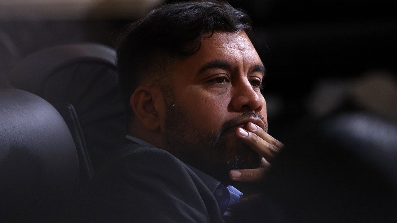 Hugo Soto-Martinez, a member of the Los Angeles City Council, will monitor the minutes on September 20, 2024 in the meeting room of a council in the city hall in Los Angeles. (Genaro Molina/Los Angeles Times Getty Images)