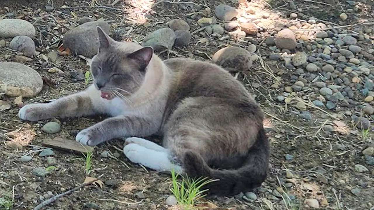 A woman noticed the Siamese cat on the street and gave it food and water before successfully capturing it on August 3. The woman then took it to her local Society for the Prevention of Cruelty to Animals to be scanned for a microchip.