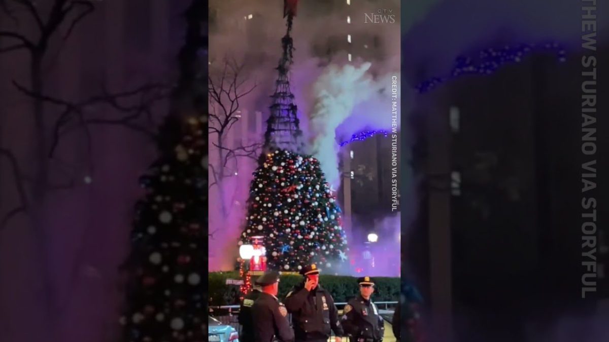 A man has been arrested by the NYPD after the Christmas tree outside the Fox News office in New York was set ablaze.