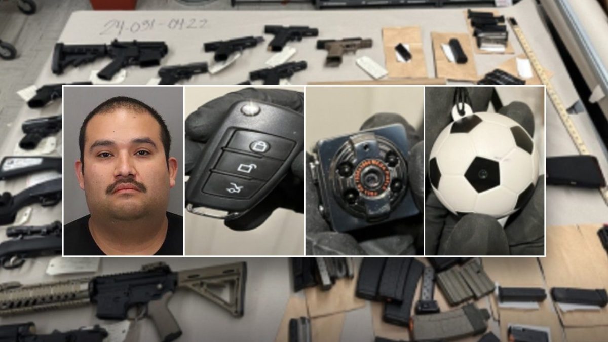 When detectives executed a search warrant at Juarez’s home, they found approximately 20 firearms, assault rifles, unregistered firearms, high-capacity magazines and other micro-cameras.