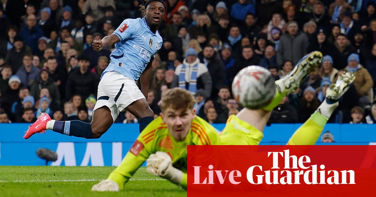 “,”elementId”:”c281e565-2726-4d9f-afc2-9c5fa6a14fab”}],”attributes”:{“pinned”:false,”keyEvent”:true,”summary”:false},”blockCreatedOn”:1736618656000,”blockCreatedOnDisplay”:”13.04 EST”,”blockLastUpdated”:1736618788000,”blockLastUpdatedDisplay”: “13.06 EST”,”blockFirstPublished”:1736618788000,”blockFirstPublishedDisplay”:”13.06 EST”,”blockFirstPublishedDisplayNoTimezone”:”13.06″,”title”:”Goal! Man City 2-0 Salford (Mbama 20)”,”contributors”:[],”primaryDateLine”:”Saturday 11 January 2025 13.07 EST”,”secondaryDateLine”:”First published Saturday 11 January 2025 11.30 EST”},{“id”:”6782b0218f080fc8a0ad422b”,”elements”:[{“_type”:”model.dotcomrendering.pageElements.TextBlockElement”,”html”:”