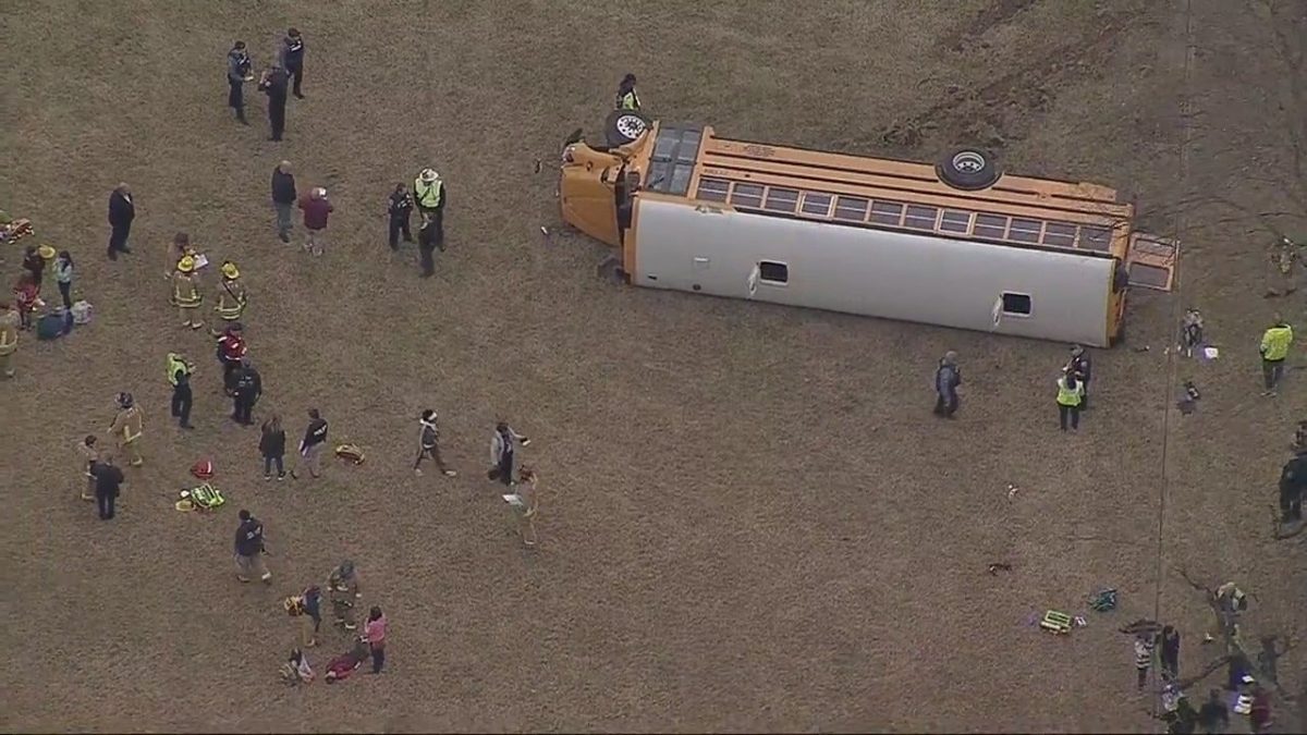 On February 8, 2024, a school bus overturned in Columbia, Maryland, sending four of the 19 students on board to the hospital. (FOX5DC)