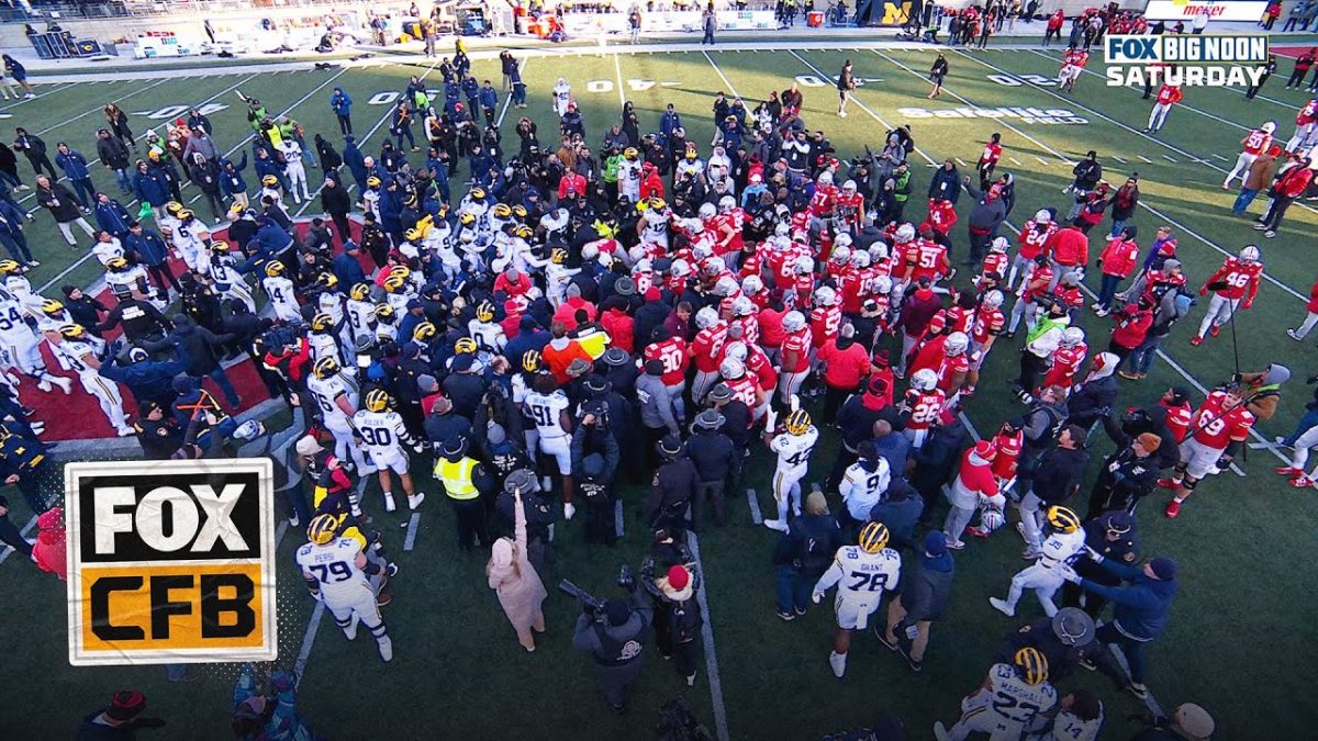 Tempers flared after the Michigan Wolverines tried to plant their flag on the Ohio State Buckeyes’ logo. #CFBonFOX #CFB …