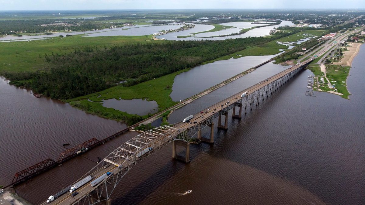 The Calcasieu River Bridge is located in Lake Charles, Louisiana. (Mark Felix for The Washington Post via Getty Images, File)