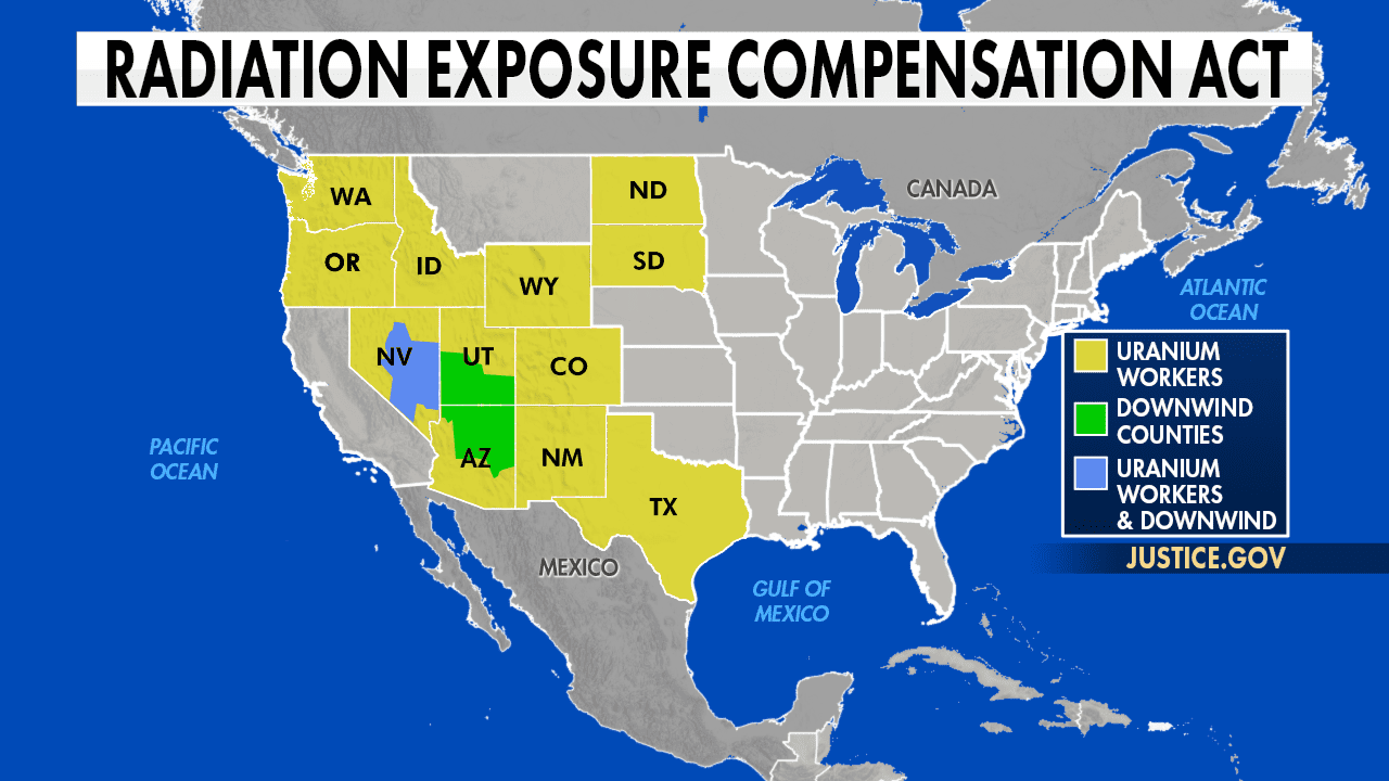 放射線被ばく補償法は特定の州の被害者に適用されるが、その適用を拡大しようとする動きがある。 (フォックス・ニュース)
