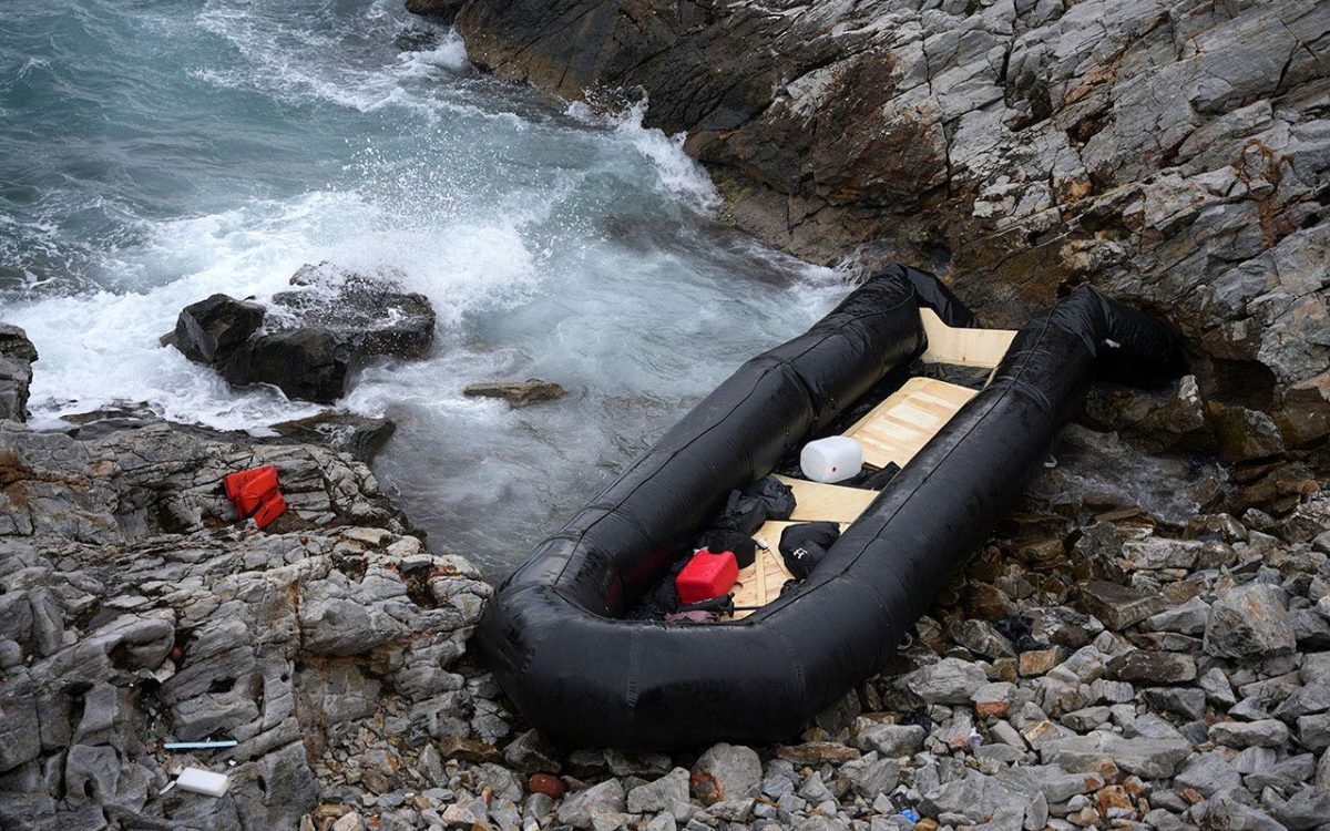 A dinghy lies on the shore after a shipwreck in which two migrants were killed and eight others were rescued, Wednesday, January 10, 2023, on the Aegean island of Thermi, northeast of the Greek island of Lesbos. The UN migration agency reported on Wednesday that two migrants had died and eight had been rescued. The number of people who died on land and sea routes around the world last year was the highest since death tolls began being tallied 10 years ago. The International Organization for Migration says the biggest increase in deaths last year was due to the dangerous Mediterranean crossing. (AP Photo/Panagiotis Balaskas, File)