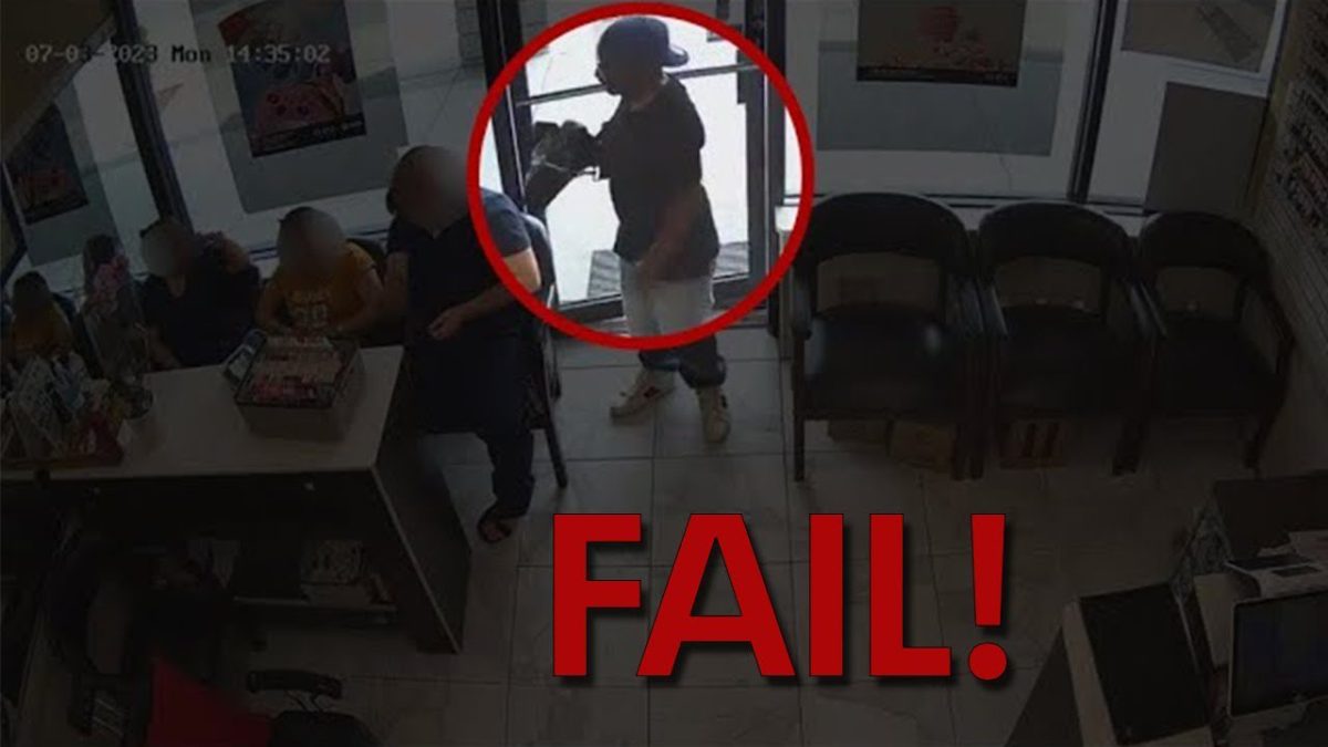In surveillance video, the man can be heard yelling: “Everybody get down! Give me your money! Give me your money!