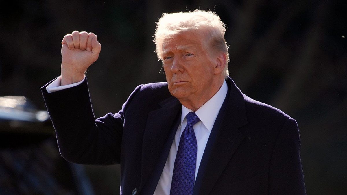 President Donald Trump was on his way to the NASCAR Daytona 500, a one-sized air force at Palm Beach International Airport, on Sunday, February 16, 2025. (Pool photo via AP)