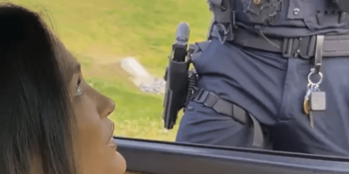 A police officer then approached the woman’s car window and told her she was speeding. During the fake traffic stop, he identified himself as “Officer Johnson of the PD.”