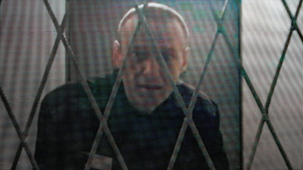 Russian opposition leader Alexei Navalny appears via video link from the Arctic penal colony, where he is serving a 19-year sentence provided by the Russian Federal Prison Service, during a hearing at the Russian Supreme Court in Moscow, Russia. Appears through. (AP/Alexander Zemlyanichenko)