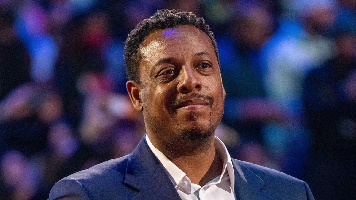 NBA great Paul Pierce is honored to be named to the NBA 75th Anniversary Team during halftime of the 2022 NBA All-Star Game at Rocket Mortgage Fieldhouse in Cleveland on February 20, 2022. I think so. (Kyle Terada/USA Today Sports)
