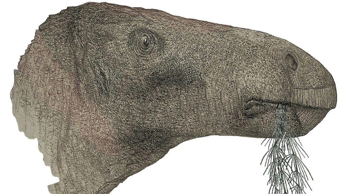 Artist John Sibbick’s work depicts Comptonatus chasei, a new species of herbivorous dinosaur whose fossils were discovered on the Isle of Wight in the UK. (John Sibick/Distributed via Reuters)