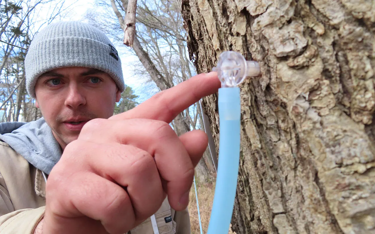 In Stockton, work typically begins around the second week of January, when participants use cordless drills to drill small holes in trees and install metal faucets through which the sap will flow. A vacuum-driven hose system helps the sap flow, delivering the liquid to the collection bucket twice as fast as if it were just dripping without assistance.
