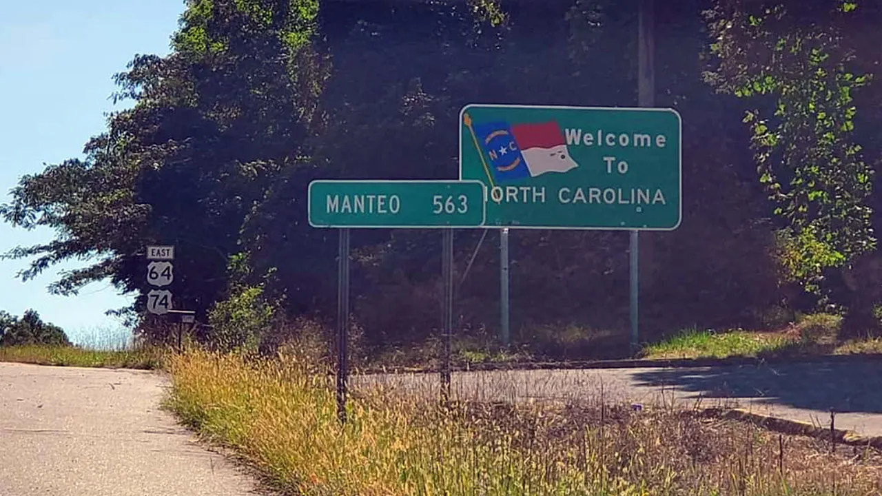 US-64 enters North Carolina from Tennessee near Hothouse, and signs mark the long drive across the state to the Outer Banks. (Charlie Crates)
