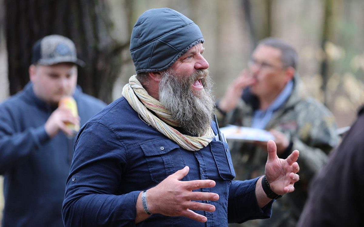 Slate Ridge owner Daniel Banyai speaks with supporters on April 17, 2021 in West Pawlet, Vermont. Bunyai, a former Vermont firearms training center owner, was arrested Wednesday in Pawlet, Vermont, according to state police. (AP Photo/Wilson Ring, File)