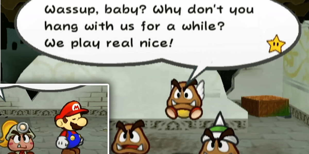 In one of the game’s opening scenes, the paper character encounters Goomba, a classic Mario enemy, as a way to set up a tutorial.as border to comics Reportedly, in the original version of the game, one of the enemies said, “Hey, hey, what’s going on? Who’s that hot guy you were with?”