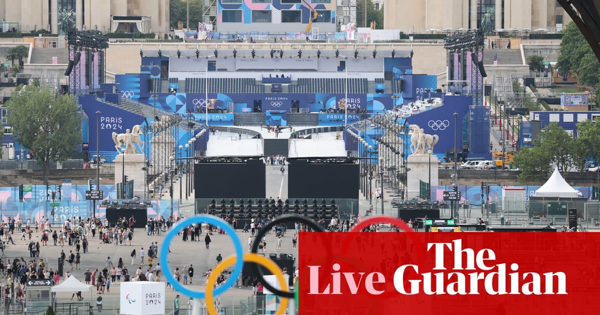 “,”elementId”:”ad2cd3be-b9f4-4794-856a-601162fb1d6e”},{“_type”:”model.dotcomrendering.pageElements.RichLinkBlockElement”,”prefix”:”Related: “,”text”:”Paris prepares for Olympics opening ceremony spectacle along River Seine”,”elementId”:”6fc9ff45-7327-4f52-9729-f00835e6359f”,”role”:”thumbnail”,”url”:”https://www.theguardian.com/sport/article/2024/jul/25/paris-prepares-for-olympics-opening-ceremony-spectacle-along-river-seine”}],”attributes”:{“pinned”:false,”keyEvent”:true,”summary”:false},”blockCreatedOn”:1721977510000,”blockCreatedOnDisplay”:”03.05 EDT”,”blockLastUpdated”:1721977712000,”blockLastUpdatedDisplay”: “03.08 EDT”,”blockFirstPublished”:1721977510000,”blockFirstPublishedDisplay”:”03.05 EDT”,”blockFirstPublishedDisplayNoTimezone”:”03.05″,”title”:”Preface”,”Contributor”:[],”primaryDateLine”:”Friday, July 26, 2024 03:26 EDT”,”secondaryDateLine”:”First Published Friday, July 26, 2024 03:05 EDT”}],”filterKeyEvents”:false,”id”:”key-events-carousel-mobile”,”absoluteServerTimes”:false}”>