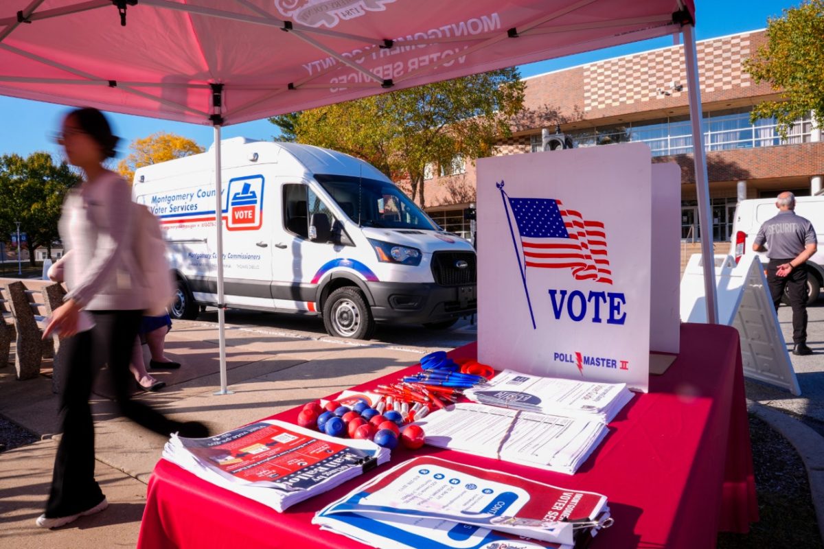 A voter submits a mail-in ballot at a Montgomery County service van in King of Prussia, Pennsylvania. (AP Photo/Matt Rourke)