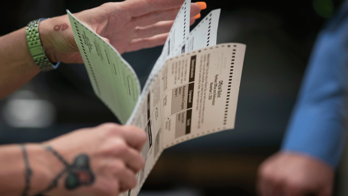 Poll workers sort through ballots at Kenosha City Hall in Kenosha, Wisconsin, on Election Day, November 3, 2020. The Wisconsin lawsuit alleges that voters with disabilities should be able to vote electronically and are not being offered that option. The upcoming primary election on Tuesday, August 13th and the presidential election in November 2024 are discriminatory and unconstitutional. The lawsuit, filed Tuesday, April 16, seeks to make electronic absentee voting an option for people with disabilities in Wisconsin, just like military and overseas voters. (Wong Maye-E/AP Photo)