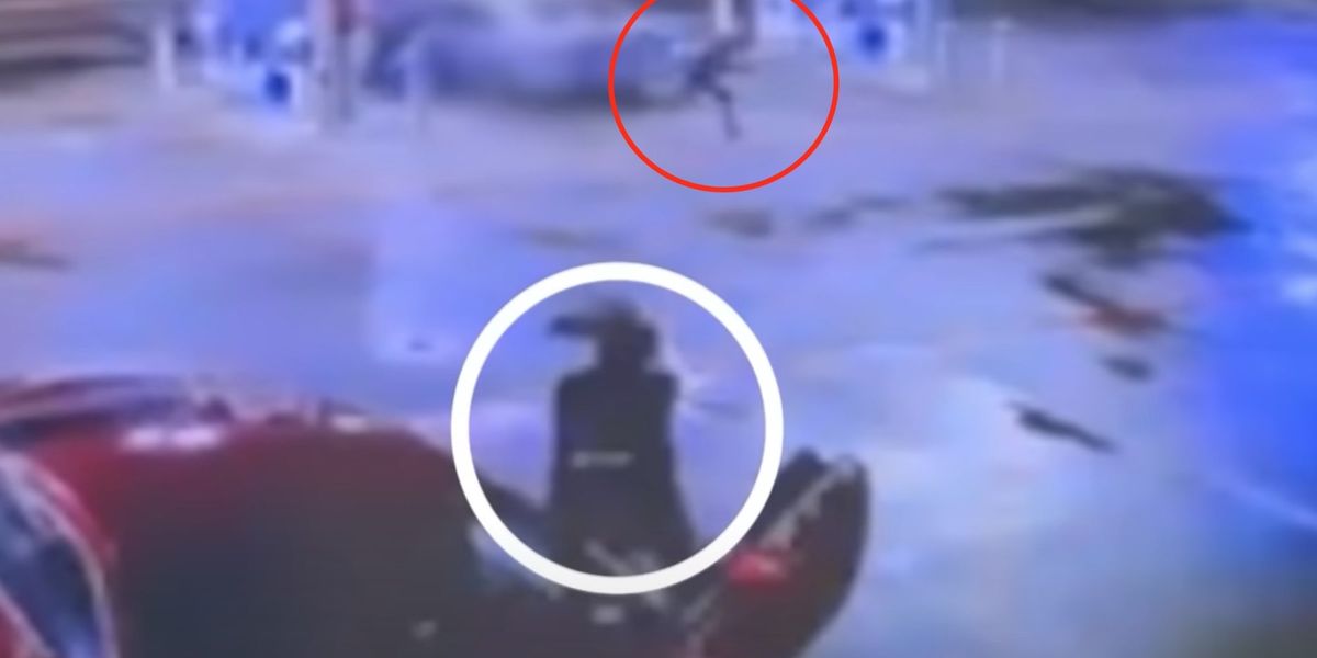 The video showed a bystander getting out of a red car parked in front of the gas station and pointing a gun at the man who was running towards him. After the assailant collapsed, a bystander walked to the victim’s car and told him to retrieve his property from the assailant, police said.