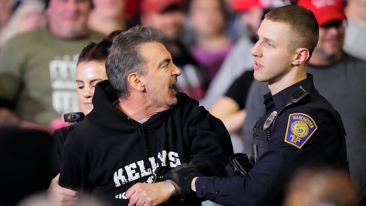 Video from the rally shows that as Secret Service agents and local Manchester police approached the instigator, the man appeared to try to grab his jacket, then turned and began walking quickly toward the stage.