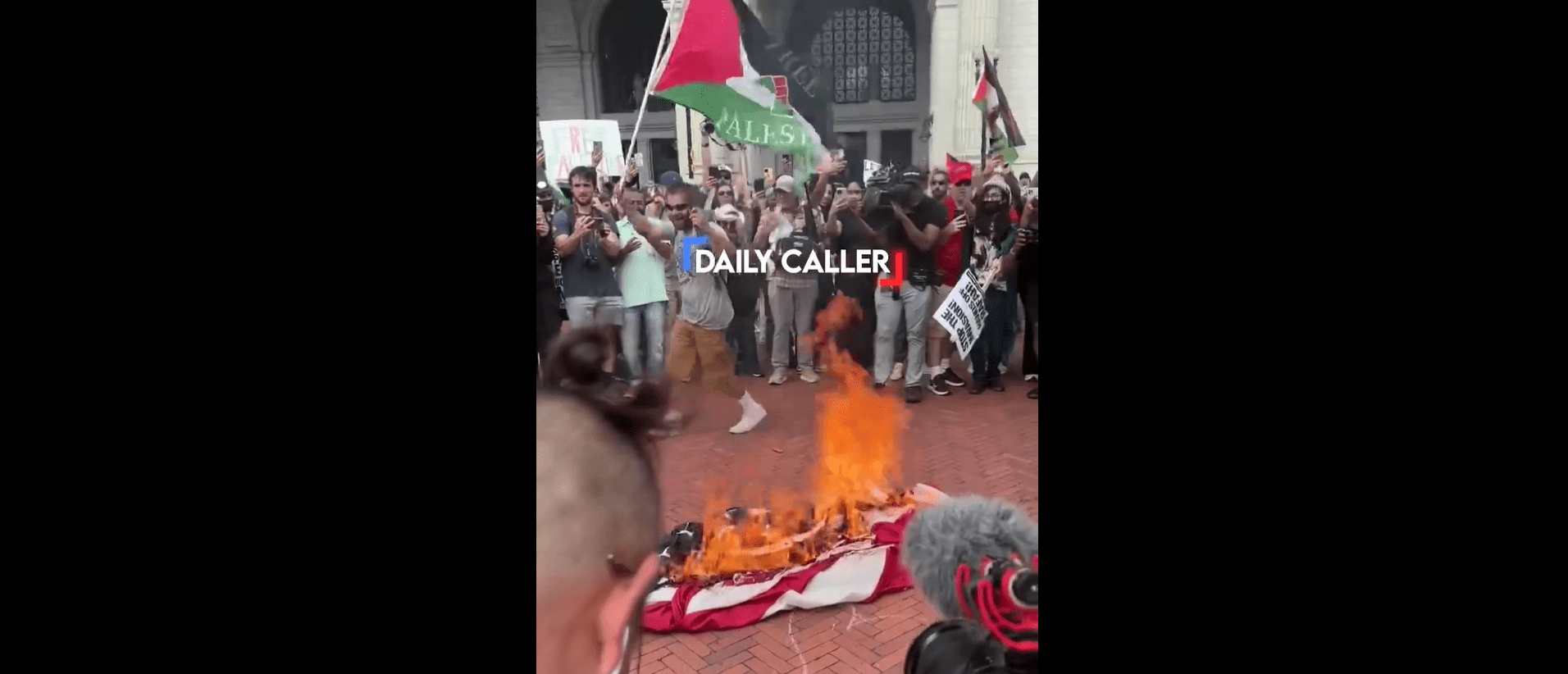 Pro-Palestinian and anti-Israel protesters burned the American flag at the nation’s capital during Israeli Prime Minister Benjamin Netanyahu’s state visit Wednesday. The activists later replaced it with the Palestinian flag, video captured by the Daily Caller shows.