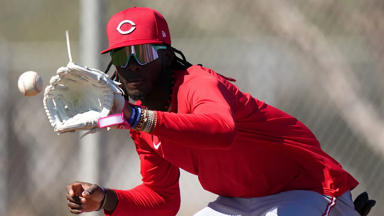 Cincinnati Reds shortstop Ellie Delacruz catches a throw at third base during spring training on Monday, February 19, 2024, at the team’s spring training facility in Goodyear, Arizona. (Kareem Elgazar/Enquirer/USA TODAY NETWORK)
