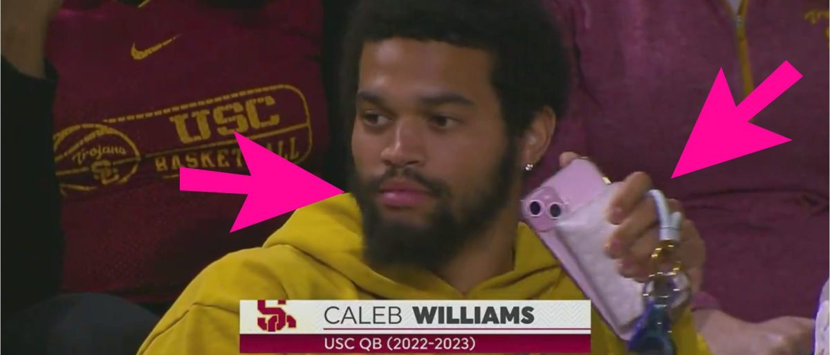 The potential No. 1 pick in the NFL draft after she was spotted at a USC women’s March Madness game with a pink iPhone, pink wallet, matching pink nails and what appeared to be pink lipstick. there is a possibility caleb williams It was totally slammed by fans, and rightly so.