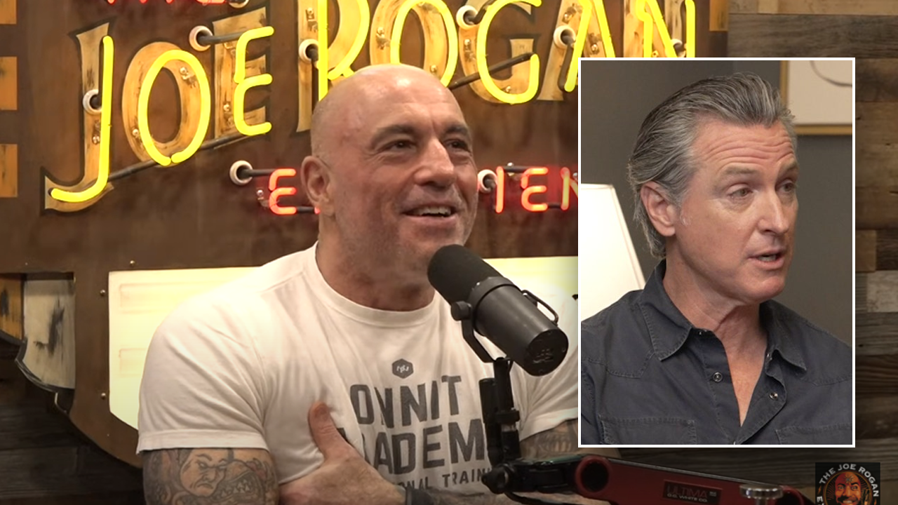 Podcaster Joe Rogan chuckled California Gov. Gavin Newsom's podcast as a weak attempt to mimic his show. (Logan photo from Joe Rogan Experience | Newspaper photo from “This is Gavin Newsom”)