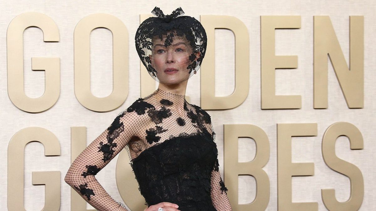 Rosamund Pike wears ‘protective veil’ to Golden Globes after ski accident ‘smashed up’ her face